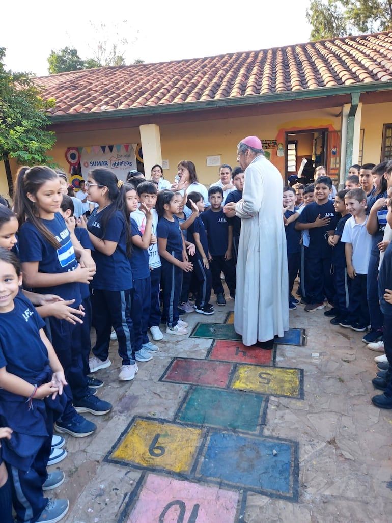 En ese patio escolar, entre juegos y risas, se pudo ver a un obispo que no teme ser niño para acercarse a su rebaño, recordándonos que la espiritualidad también se vive en el juego, en el abrazo y en la compañía cercana.