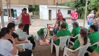 “Estamos enseñando los procedimientos básicos de primeros auxilios, qué acciones pueden realizar ante una emergencia, a qué números recurrir y cómo actuar mientras llega la asistencia especializada”, explicó.