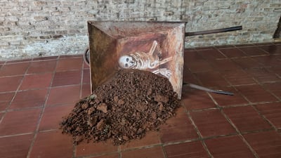 En otra obra se observa a un joven que entierra una caja con sus libros en la esquina de su huerta, tras correrse la voz de una inminente intervención de la dictadura. Ante el temor de represalias por poseer materiales considerados contrarios al régimen, decide ocultarlos bajo tierra, en un acto silencioso de resistencia.