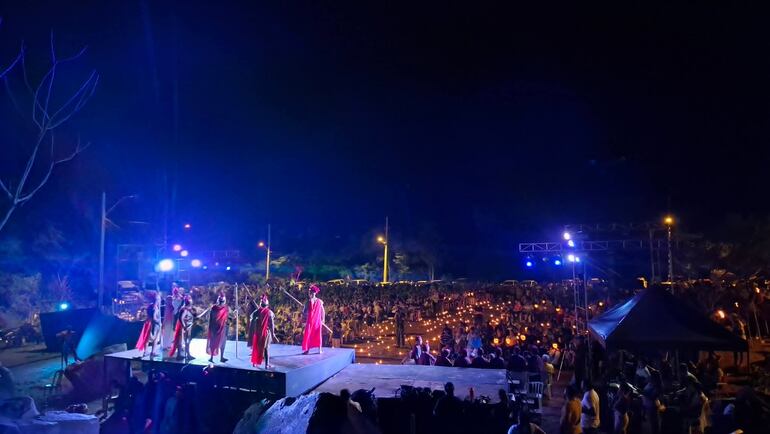 Uno de los momentos más impactantes de la jornada fue la iluminación del predio con aproximadamente 3.000 candiles y 200 antorchas, preparados por estudiantes de la Escuela Cerro Corá y de instituciones educativas como Gregorio Ramón Cardozo de Yeguarizo y San Juan de Cista Báez. Este despliegue de luces dio un marco simbólico y sobrecogedor a la representación.