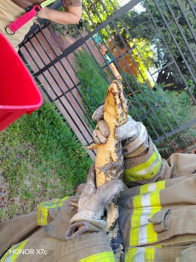 El rescate fue realizado por bomberos voluntarios de la compañía K13, quienes acudieron al llamado de una vecina, una mujer mayor que alertó sobre la presencia de lo que inicialmente describió como un “pequeño cocodrilo” en su patio.