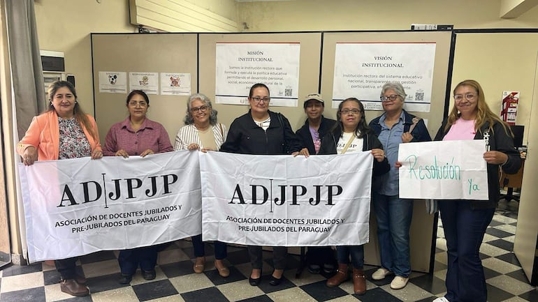 Un grupo de docentes de escuelas públicas, protesta en estos momentos frente a oficinas del Ministerio de Educación y Ciencias (MEC), exigiendo celeridad en los trámites para acceder a la jubilación.