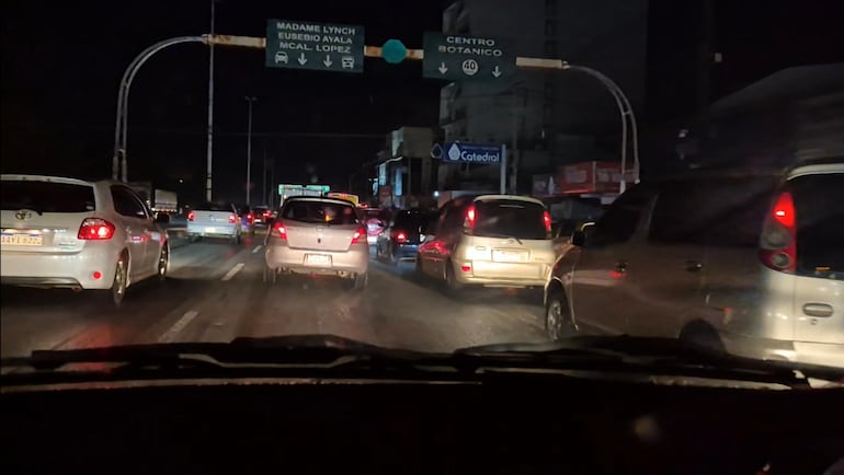 El apagón persiste en todo el tramo de la avenida Primer Presidente, hasta el acceso a la avenida Costanera Norte.