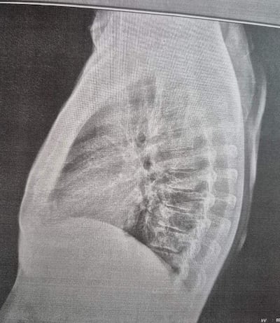 “Yo estaba discutiendo eso con el secretario, diciéndole que es injusta la multa. Ahí sale el director de su oficina y directo me pega en el pecho. Yo no hice nada, no reaccioné, pueden ver si piden los videos. Directo salí, fui al hospital y denuncié ante la Comisaría”, dijo mostrando la radiografía que muestra el golpe.