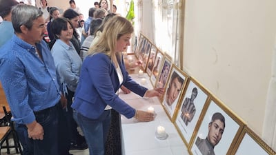 Judith Rolón enciende una vela frente al retrato de su padre Martín Rolón, durante un acto conmemorativo en Santa Rosa, Misiones.Jesús Riveros