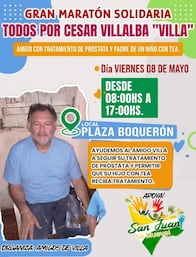La organización solidaria San Juan se Mueve, de la ciudad de San Juan Bautista, Misiones, está organizando esta maratón a favor de César Villalba, quien semanas atrás había anunciado que estaba rifando su vivienda para costear gastos médicos y asistir a su familia.