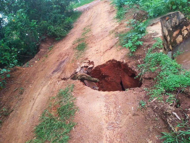 Por otra parte, en la compañía Peña, vecinos alertan que el boquete podría agravarse si vuelven las lluvias. El poblador Celestino Aguayo pidió una intervención urgente, que se repare el puente y que se realice la carga de ripio para garantizar el tránsito seguro. En una pasarela del lugar, el raudal arrastró parte del alcantarillado pluvial, formando un boquete en medio del camino vecinal.