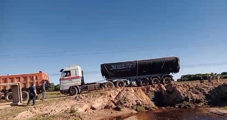 El inconveniente se originó luego de que parte de la estructura del puente fuera arrastrada por las intensas lluvias registradas el pasado viernes. A raíz de ello, el MOPC realizó trabajos de emergencia para restablecer el tránsito vehicular, aunque de manera provisoria.