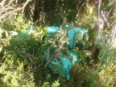Sin embargo al parecer los paquetes fueron dejados ocultos entre los matorrales, para que otras personas la vengan a buscar.