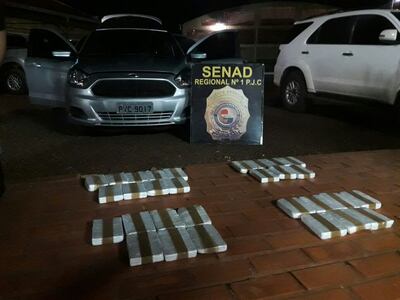 Agentes de la Secretaría Nacional Antidrogas con acompañamiento del fiscal Armando Cantero, allanaron una vivienda y durante la verificación de dos vehículos estacionados en el lugar se hallaron varios panes de supuesta cocaína.