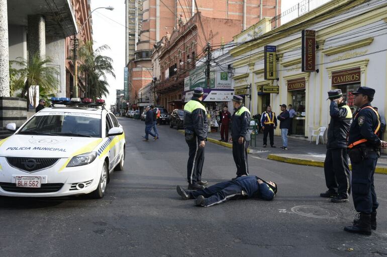 El Insp. Ricardo González se dirigía a la oficina de la PMT por la calle 14 de Mayo a bordo de una motocicleta oficial cuando, al llegar a la intersección con calle Estrella, fue chocado por un automóvil de la marca Nissan, informó Edgardo Romero, periodista de ABC Cardinal.