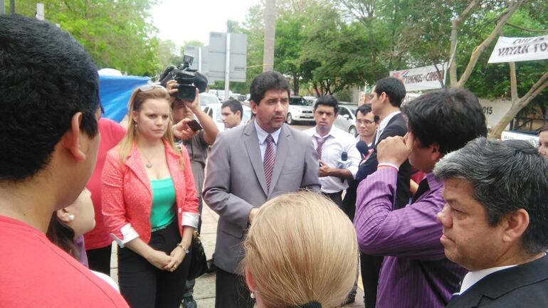 Cabrera conversó con la prensa antes de iniciar el procedimiento. Informó que iba a deslacrar las oficinas que fueron selladas el lunes pasado y que incautarán documentos relacionados a diversas dependencias de la Facultad de Derecho para saber si existen o no hechos de corrupción dentro de esta rama de la Universidad Nacional de Asunción.