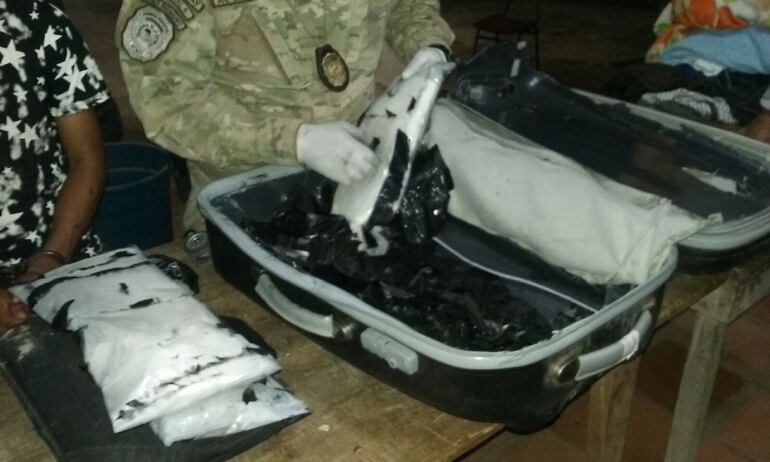 El extranjero traía consigo 3,331 kilos de cocaína, que estaban distribuidos en tres paquetes envueltos en papel carbónico, a su vez ocultos en un compartimento secreto dentro de su maleta, según el informe de la Secretaría Nacional Antidrogas (Senad).