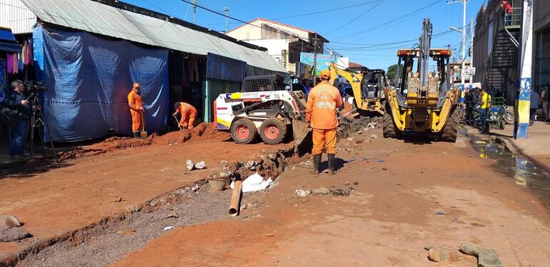 "Si lo hubiésemos hecho con una empresa contratista, la obra demandaría una inversión de G. 800 millones", expresó Chase. Indicó que los trabajos culminarán en dos semanas, dependiendo de las condiciones climáticas, y señaló que es fundamental que los comercios regularicen sus sistemas de tratamiento de aguas servidas; de lo contrario, la nueva infraestructura volverá a colapsar. Se colocarán 350 metros de tuberías de 250 milímetros de material PVC.