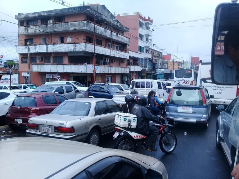 Una desesperación absoluta viven quienes intentan transitar por la zona, pues la gente que está haciendo las compras de fin de año estaciona en los sitios más inverosímiles, congestionando el trayecto. El caos se apodera de toda la arteria de Rodríguez de Francia que abarca el mercado, y apenas unas cuadras se recorren en más de media hora.