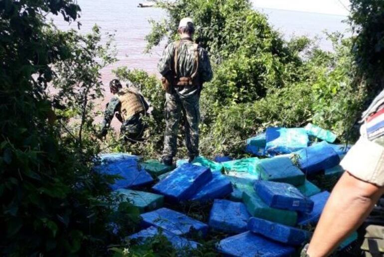 Las autoridades lograron cuantificar la droga que fue abandonada a la vera del río Paraná, cerca del lugar donde se produjo el enfrentamiento entre agentes de la Senad, Prefectura Naval y narcos en la localidad de Carmen del Paraná, en la noche del lunes último.