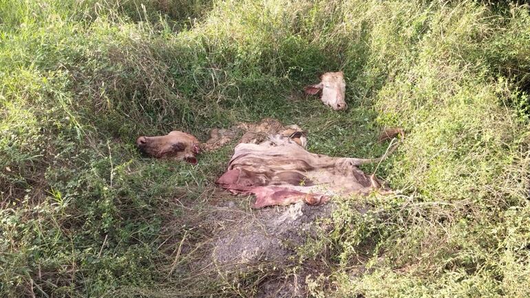 Una vez que llegaron al lugar señalado, los agentes policiales, encontraron los restos de 2 animales vacunos faenados al costado del camino, propiedad del ganadero Aristaldo García, los abigeos aprovecharon el momento en que este productor se encontraba de viaje.