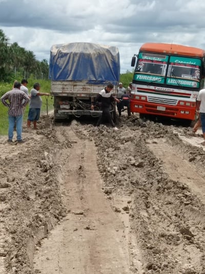 Desde hace algunos días se registran lluvias continuas en esta región chaqueña, y en el día de ayer, se pudo observar cuando un tractor estaba ayudando a un camión transganado, por el ya deteriorado camino de tierra; esto posibilitará que se produzcan huellas profundas, y con las lluvias se conviertan en verdaderos tajamares.
