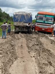 Desde hace algunos días se registran lluvias continuas en esta región chaqueña, y en el día de ayer, se pudo observar cuando un tractor estaba ayudando a un camión transganado, por el ya deteriorado camino de tierra; esto posibilitará que se produzcan huellas profundas, y con las lluvias se conviertan en verdaderos tajamares.
