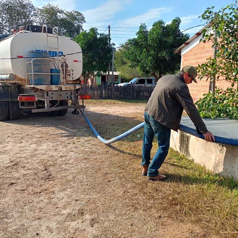 La falta de lluvia de grandes proporciones en la zona, hace que de nuevo varias familias de diferentes comunidades del distrito de Fuerte Olimpo, estén siendo asistidos con el acarreo de agua en camiones cisternas, como en años anteriores.