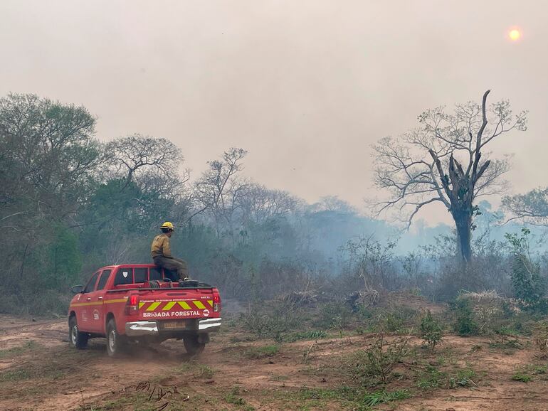 Detalló que están trabajando con ayuda de un helicóptero y una aeronave, que sirve de apoyo logístico, llevando insumos y combustible desde Mariscal Estigarribia hasta Campo Grande.