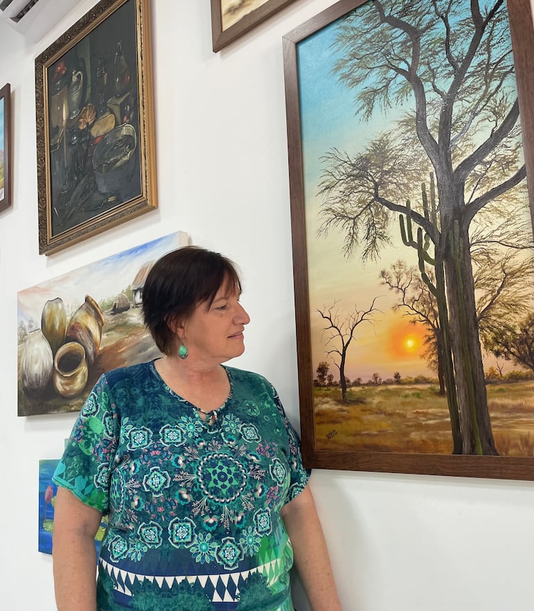La Galería Kreativ existe hace un año y en el lugar están expuestos los cuadros de Gerda que expresan una fuerte conexión con la naturaleza y con sus elementos, ya que su obra retrata desde exuberantes atardeceres hasta animales típicos de la región retratados en vivos colores.