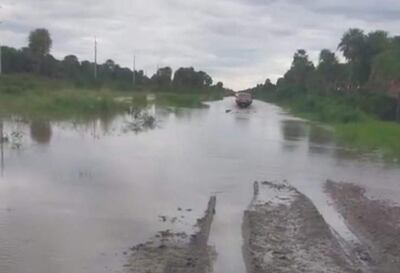Desde el pasado 14 de abril no se puede transitar por el camino que llega a la ruta bioceánica, debido a que existe un promedio de 10 kilómetros de zona inundada, tras las torrenciales lluvias, pero por sobre todo debido a la falta de trabajos de levantamiento de terraplén y la no colocación de los sistemas de desagüe.