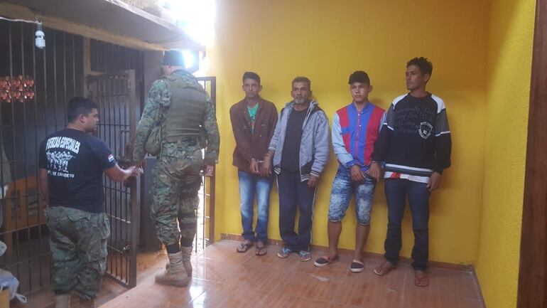 Fueron detenidos:Eliodo Italia Rolón, Arnaldo Irala Miranda, Ever Ramón Irala Miranda, Sebastián Irala Miranda y Florencio Alcaraz, todos mayores de edad. Los hombres y las evidencias fueron puestos a disposición de la Fiscalía, ya en sede policial.