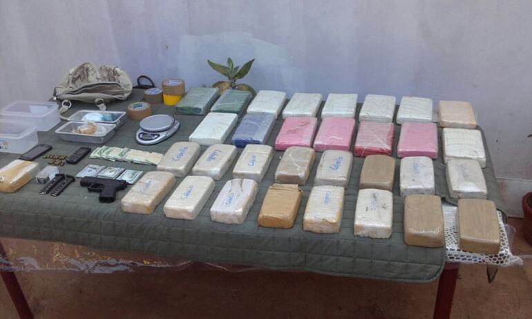 Los agentes, al mando de la fiscala Katia Uemura, allanaron la vivienda donde se encontraba el detenido y tras un minucioso cateo hallaron en el interior de una camioneta marca Hyundai, modelo Santa Fe, y 31 panes de cocaína que totalizarían aproximadamente 32 kilos. También se incautaron de una pistola calibre 22 con dos cargadores y 33 cartuchos, así como G. 8 millones y US$ 3.000. En estos momentos, los intervinientes aún están en el lugar cateando la vivienda por si logren hallar más drogas o armas.