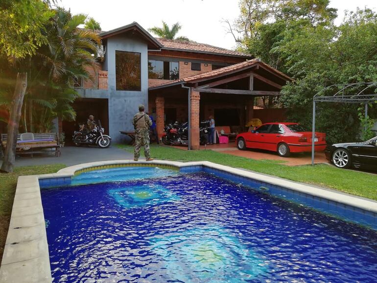 Una comitiva de la Senad, encabezada por el fiscal Ysaac Ferreira, allanó a las 18:50 de este miércoles una lujosa vivienda, ubicada en las calles Mayor Agileo Ayala entre Cirilo Rivarola y Dr. Facundo Machaín, del barrio Villa Aurelia de la ciudad de Asunción.