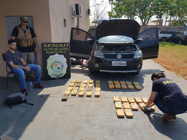 Pedro Italo Cravo Oliveira, quien guiaba el rodado, quedó detenido a cargo del fiscal Ysrel Villalba, ya que tras trasladar el vehículo a la base regional de la Senad, se logró contabilizar el total de la cocaína, que asciende a 43 kilos con 600 gramos, distribuidos en paquetes plásticos.