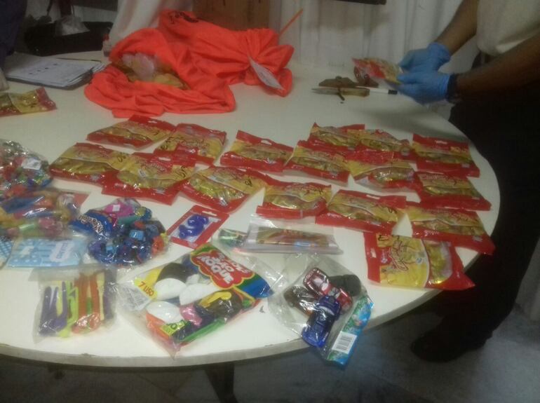 Esta mañana abrió la encomienda en el Palacio de Justicia. Son dos cajas que contienen 20 paquetes con 20 caramelos cada uno. Las pruebas practicadas revelan que tienen un alto porcentaje de cocaína, explicó la jueza Lici Sánchez, según informes de Perla Silguero, periodista de ABC Color.