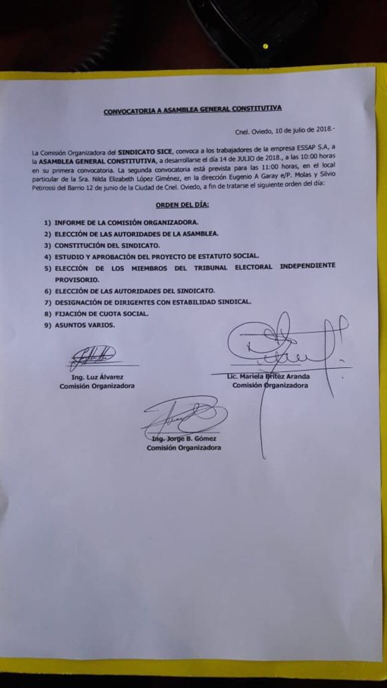En 2013 se constituyó Situe, Sindicato de Trabajadores Unidos de la Essap, liderado por el taxista Bernabé Penayo, exjefe de Recursos Humanos.