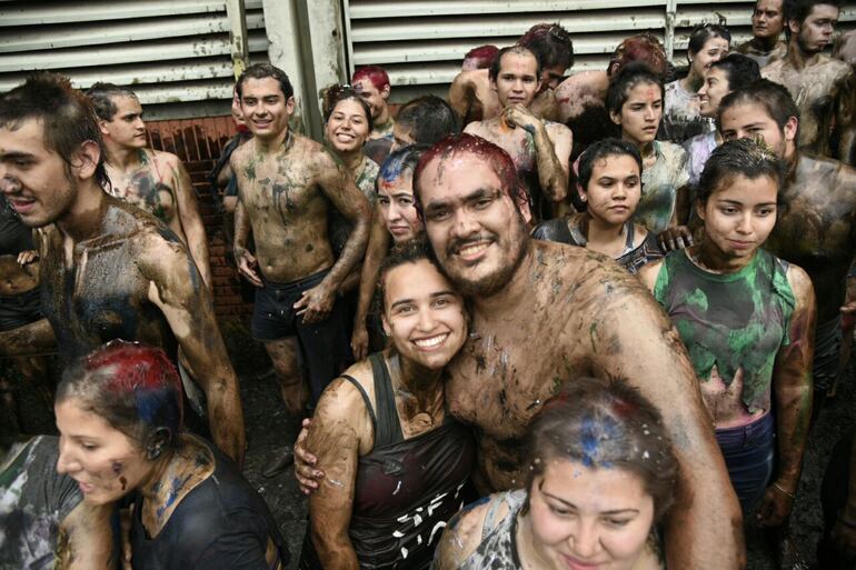 La fiesta ya empezó en esta tarde nublada de viernes en la Facultad de Medicina de la Universidad Nacional de Asunción (UNA). Alumnos acompañados por sus padres e ingresantes celebran la culminación de los intensos exámenes de admisión.