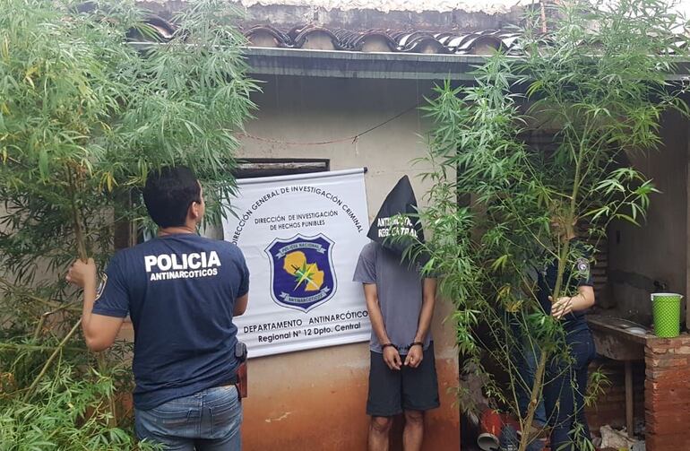 Se trata de Alfredo Egidio Molinas Zelaya, quien cuenta con antecedentes por hurto especialmente grave. El sospechoso utilizaba una parte de su patio para plantar algunas plantas de “macoña”, de cuyas hojas fabricaba cigarrillos, que luego comercializaba a los adictos del barrio, señalaron las fuentes.