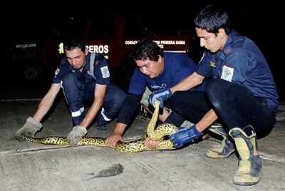 Los bomberos voluntarios trasladaron a la boa hasta el Parque Guasú, donde con ayuda de funcionarios del parque y especialistas de la Seam, reincorporarán al animal a su hábitat.