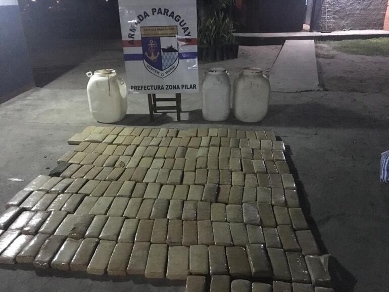 Durante el procedimiento se decomisó 187 panes de marihuana prensada, totalizando 118,6 kilogramos. La droga estaba guardada en tres tambores de 60 litros.