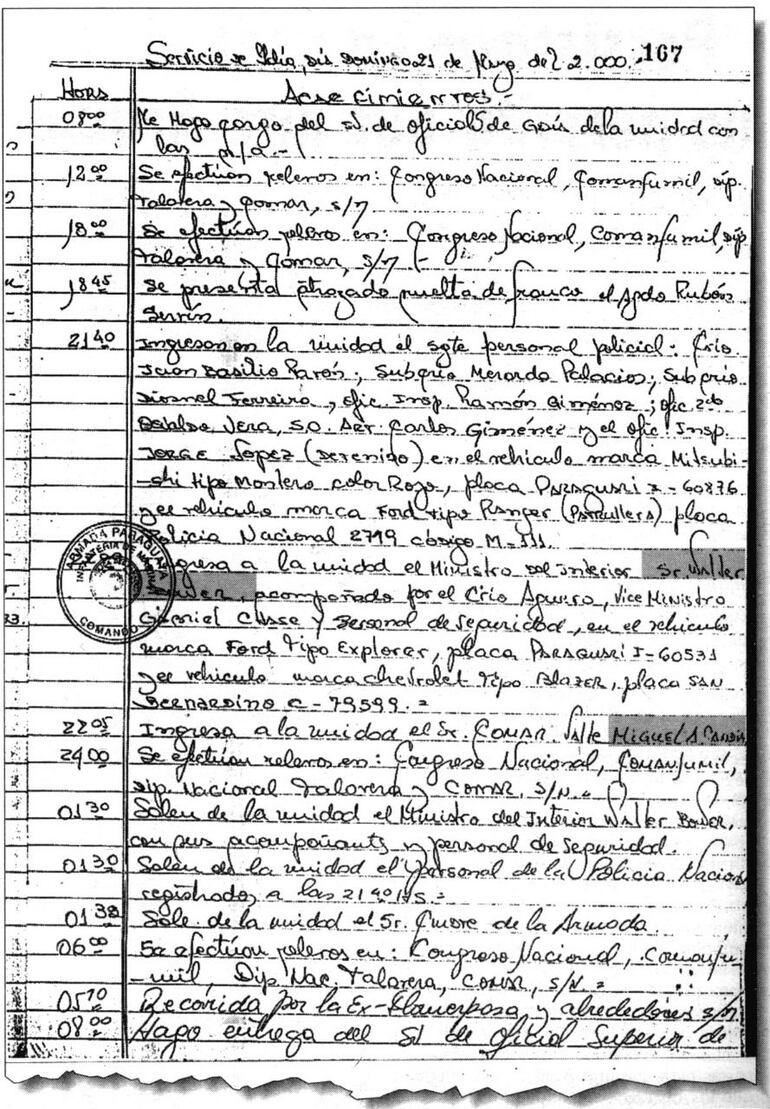 Se trata del libro de novedades de la Marina, una prueba determinante que comprobaba la presencia de Bower en el lugar en el momento en que el comisario Alfredo Cáceres y el oficial Jorge López fueron torturados por supuestamente encabezar el golpe de Estado en el año 2000, informó Perla Silguero, periodista de ABC Color.