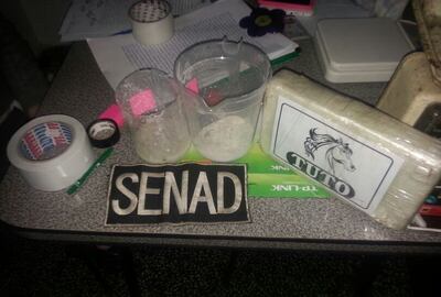 En el departamento, los agentes se incautaron de un paquete de cocaína de procedencia colombiana con el logo “tuto”, recipiente y balanzas de precisión con restos de estupefacientes.