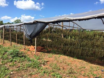 Informó a esta corresponsalía que también encontraron 2.500 kilos de marihuana bajo un invernadero improvisado en etapa de secado y 12 bidones de 40 kilos en capullo, totalizando 480 kilos de la producción ilegal. En la tercera vivienda fueron hallados 6.000 kilos de la droga, todos fueron destruidos, según el representantes del Ministerio Público.