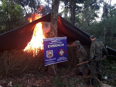 Los agentes al mando del subcomisario Freddy Amarilla, jefe policial de Antinarcóticos del Amambay, tras allanar el lugar en medio de un bosque, hallaron cinco hectáreas de cultivos de marihuana en plena etapa de cosecha.