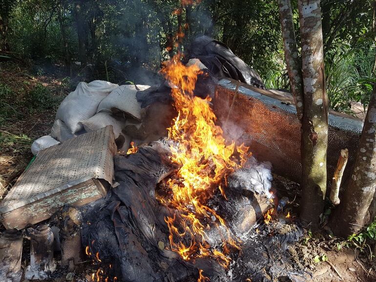 Agregó que las instalaciones eléctricas las hicieron llegar mediante cables estirados con una distancia de aproximadamente 4.000 metros. En total son tres campamentos. Todos fueron destruidos e incinerados, al igual que la marihuana picada, indicó el representante del Ministerio Público.