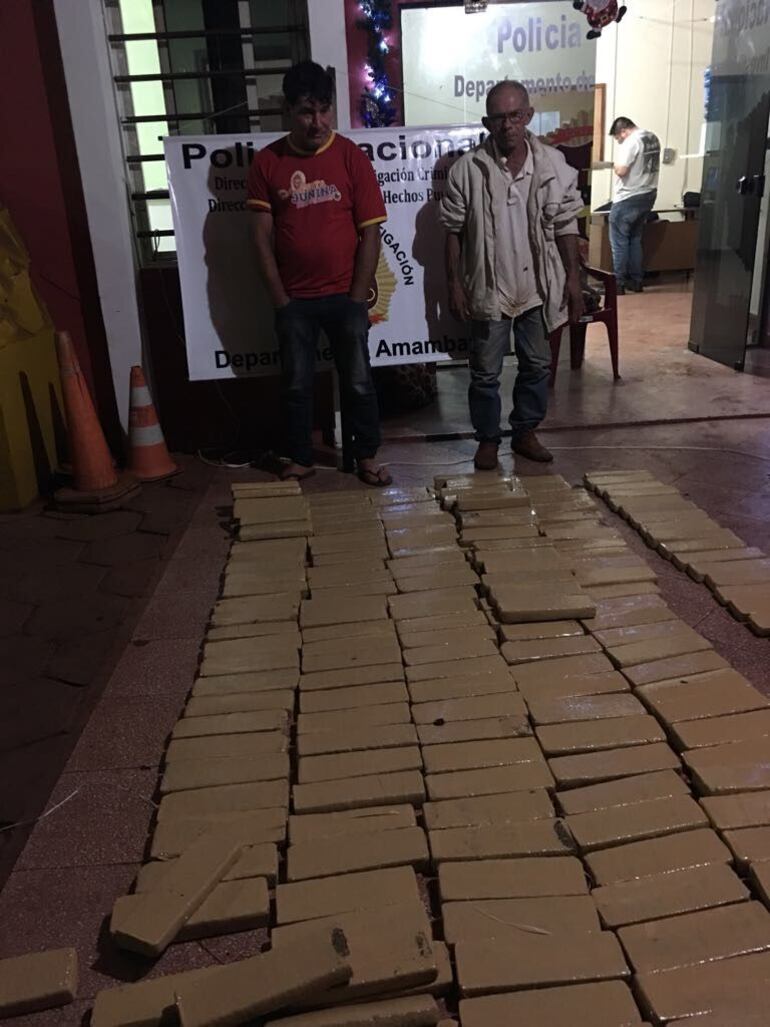 Agentes de Investigación de Delitos, a cargo del comisario Germán Arévalos, detuvieron anoche a dos sujetos que tenían oculta en su vivienda una carga de 171 kilos de marihuana prensada.