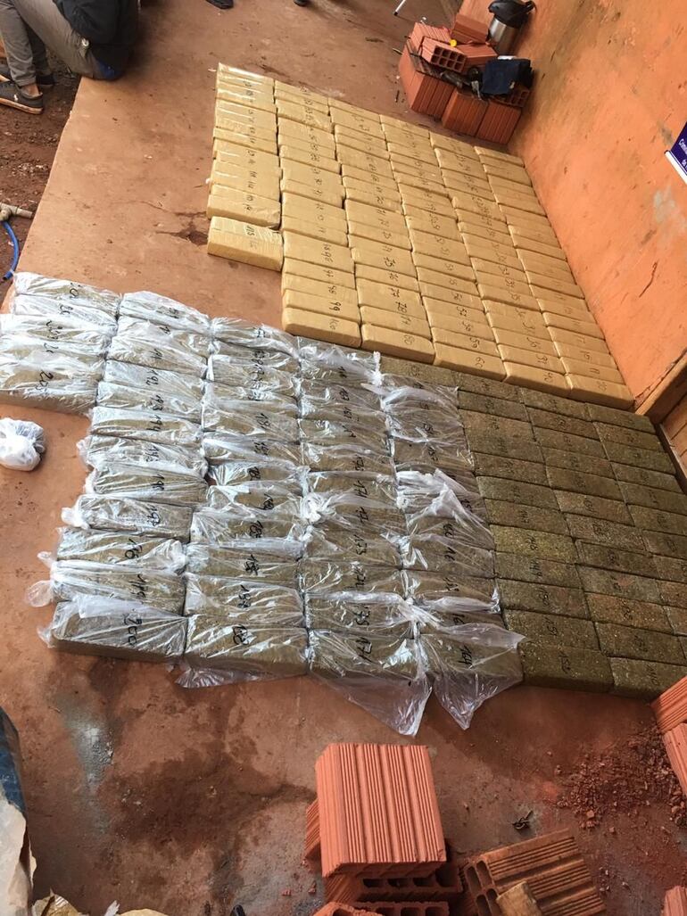 Los agentes al entrar a la vivienda divisaron a los cinco sospechosos que inmediatamente fueron reducidos, y luego se procedió a la verificación de las habitaciones. En una de ellas los agentes hallaron varias bolsas con 205 "ladrillos" de marihuana prensada con un peso total de 205 kilos.