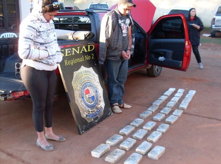 Los detenidos fueron identificados como Julio César González, paraguayo de 28 años y Julio César González, paraguaya, de 21 años. Los agentes encontraron 31 kilos y 855 gramos de cocaína distribuidos en 31 paquetes, dentro de un doble fondo fabricado en la zona del tablero del vehículo de marca Fiat Strada.