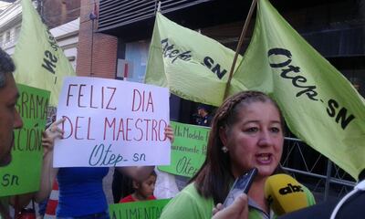 Blanca Ávalos, dirigente de la Organización de Trabajadores de la Educación del Paraguay-Sindicato Nacional (OTEP-SN), indicó que el acto frente al Ministerio de Educación y Ciencias (MEC) es para felicitar a los maestros, pero también para reclamar, porque consideran que es una sacrificada labor la que realizan, ya que tienen que pelear beneficios, reivindicaciones y presupuesto todos los años.