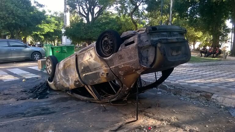 El microcentro de Asunción amaneció con una gran cantidad de destrozos luego de la jornada de violencia, que se desató a raíz de que 25 senadores se reunieran de forma irregular para aprobar el plan de una enmienda constitucional para permitir la reelección presidencial.