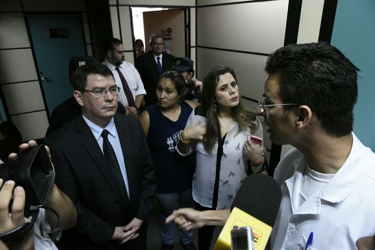 Finalmente, tras casi una hora de espera en las afueras y bajo la lluvia, se les permitió el acceso al recinto y fueron recibidos por el fiscal adjunto. Ante él ratificaron las denuncias contra los mencionados; sobre las mismas, el fiscal señaló que serán anexadas a las 12 causas abiertas sobre irregularidades dentro de la Universidad Nacional de Asunción, aclarando que al menos en lo que respecta a Medicina aún no hay imputados.
