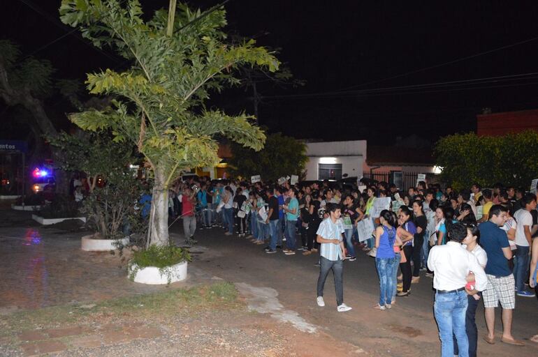 Más de 300 alumnos participaron de una asamblea realizada en el patio de la facultad y posteriormente se fueron en caravana hasta la plaza central de la ciudad y luego marcharon hasta llegar a la casa de Vilma Villamayor, ubicada en el centro de esta ciudad.