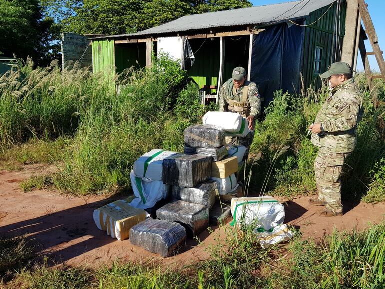 La carga de droga, distribuida en paquetes y en bolsas de arpillera plástica, estaba depositada en un precario rancho que utilizan los traficantes como depósito provisorio, desde donde transportan droga al Brasil, vía fluvial. En el momento de la intervención el local se encontraba desocupado.